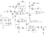 Clean Drive использует классическую схему перегрузки на двух операционных усилителях и добавляет эффект «чистого» регулятора. Регулятор Clean смешивает секцию перегрузки и тембра, позволяя переключаться между чистым усилением и средним перегрузом, с множеством промежуточных вариантов. Это создаёт уникальный перегруз, сохраняющий чёткость и оригинальную тональность, но при этом добавляющий сигналу зернистости и громкости.