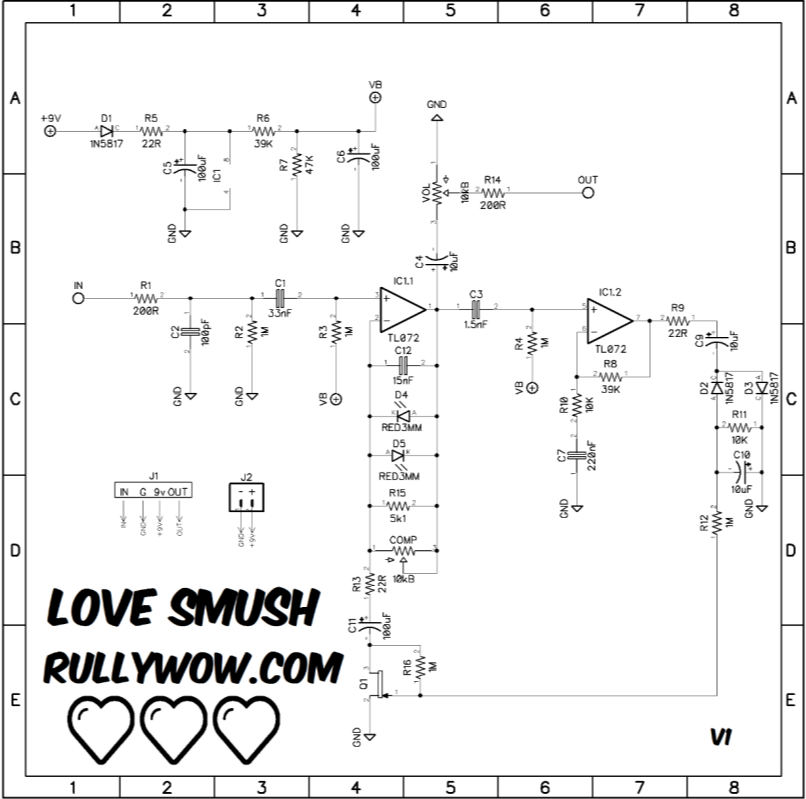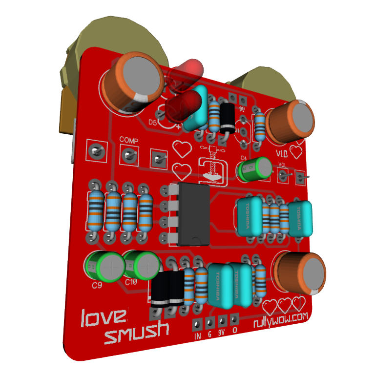 Компрессор Love Smush создан по мотивам Rothwell Love Squeeze. Сжимайте его с помощью этой простой, но отличной схемы на простой в сборке печатной плате Rullywow.