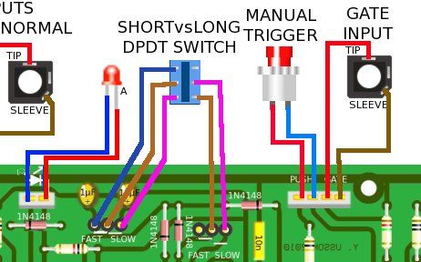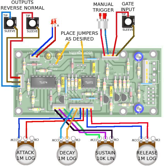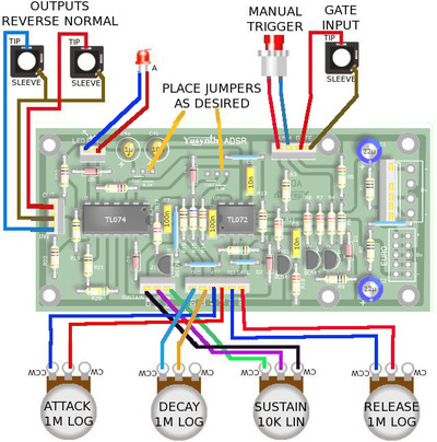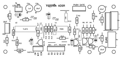 На печатной плате предусмотрены перемычки для выбора короткого или длинного варианта ADSR (можно добавить двухпозиционный переключатель для переключения между ними).