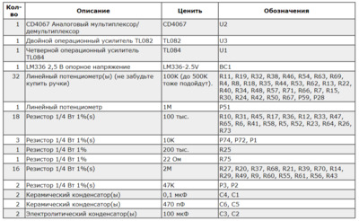 Список компонентов аналоговой платы