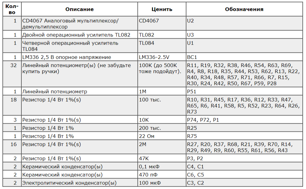 Это проект среднего и продвинутого уровня, и я не рекомендую его в качестве первого проекта, если вы только начинаете заниматься синтезаторами или электроникой. Здесь показана только схема и некоторые пояснения. Предполагается наличие большого опыта в сборке проекта, поиске и устранении неисправностей, а также в работе с электроникой. Кроме того, наличие собственного электронного оборудования (осциллограф, измерительные приборы и т. д.) также подразумевается. Если вы заинтересованы в сборке этого проекта, пожалуйста, прочтите всю страницу, прежде чем заказывать печатные платы, чтобы убедиться, что предоставленная информация достаточно подробна для успешного завершения проекта.