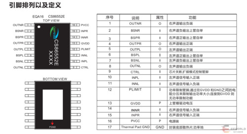 CS86552E имеет встроенную защиту от перегрузки по току, короткого замыкания и перегрева, что эффективно защищает микросхему от повреждений в ненормальных условиях эксплуатации. CS86552E может работать с акустическими системами с нагрузкой всего 4 Ом и обеспечивать непрерывную мощность до 2x20 Вт; КПД CS86552E достигает 90%, поэтому при воспроизведении музыки не требуется дополнительный радиатор.