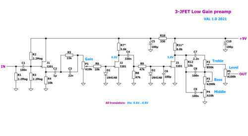 3JFET Low Gain preamp