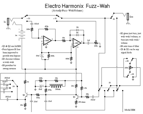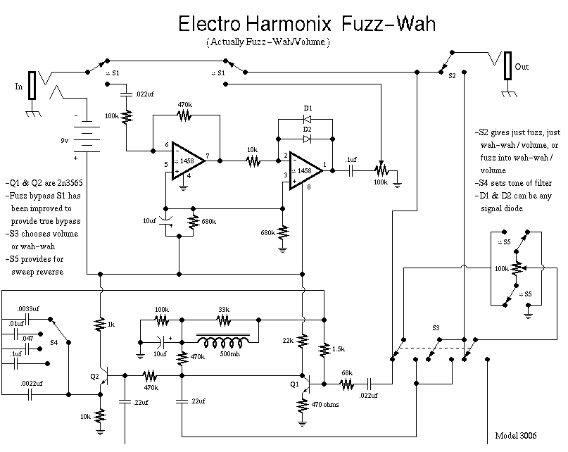 Стандартный или обратный свип, сочетает вау+фузз (либо один, либо другой) и использует секцию клиппирования Muff Fuzz.