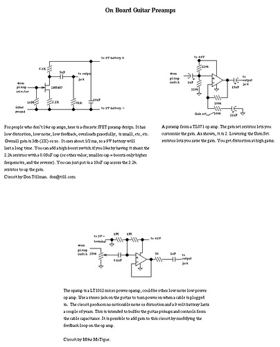 Простые небольшие предусилители на базе операционных усилителей и полевых транзисторов для гитары.