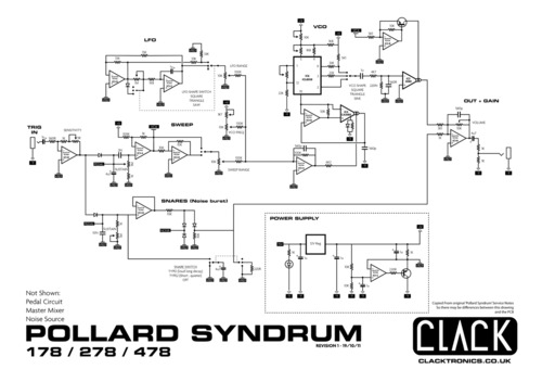 Первоначально Syndrum был создан Джо Поллардом и Марком Бартоном, это был Syndrum x77 (замените x на количество барабанов в наборе), и в интернете очень мало информации о его работе. Мне удалось приобрести сервисное руководство для модели 478, которое является обновленной версией оригинального руководства, в комплекте из 4 экземпляров.