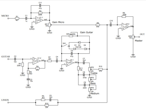 Пред усилитель: микрофон, гитара и линейный вход