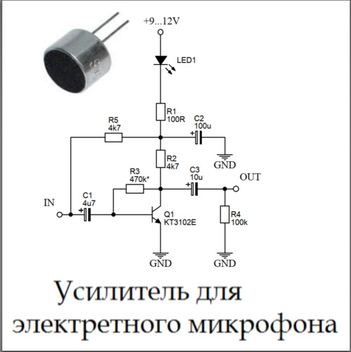 Усилитель для электретного микрофона