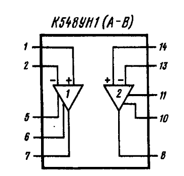 | К548УН1 (А, Б, В) малошумящий двухканальный усилитель