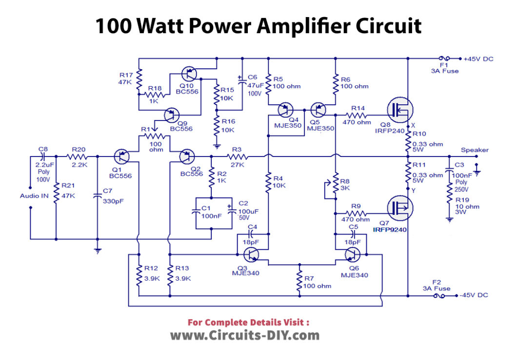 Источник: https://www.circuits-diy.com/100-watt-mosfet-power-amplifier-circuit-using-irfp240/ |
