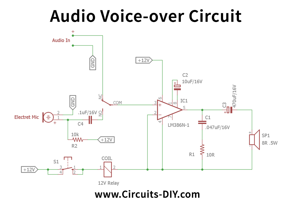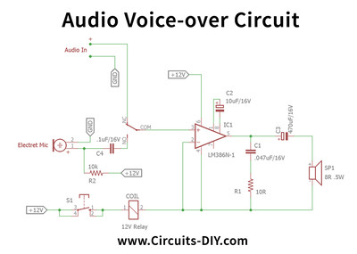 Источник: https://www.circuits-diy.com/audio-voice-over-circuit-using-lm386/ |