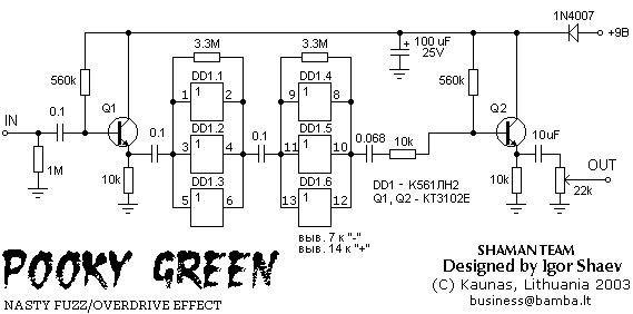 Получилась неплохая фузяка. Pooll сказал, что ее звучание напоминает и фузз и овердрайв, в чем я с ним полностью согласен :-) Советую вам не лениться и собрать схемку на макетной плате - послушать!