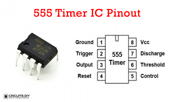 На схеме выше представлена простая схема аудиоусилителя. Здесь используется управляющий вывод 5 микросхемы 555, который обычно заземлён через конденсатор ёмкостью 0,01 мкФ. Управляющий вывод 5 предназначен для питания 2/3 В постоянного тока внутри микросхемы таймера 555, поэтому мы можем изменять это напряжение 2/3 В постоянного тока через этот вывод. Более того, изменение напряжения на этом выводе изменяет ширину выходного импульса независимо от оценки RC-цепей в схеме таймера 555. Он следует аналогичному принципу широтно-импульсной модуляции (ШИМ) для балансировки выходного сигнала. Мы использовали преимущества управляющего вывода в этой схеме.